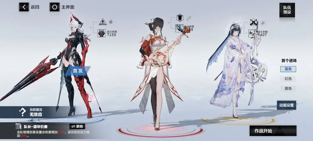 ④开荒物理队(凛冽单c):亚里莎·回音(蓝位,队长),七实·风暴(红位,首发),罗塞塔·凛冽(黄位)