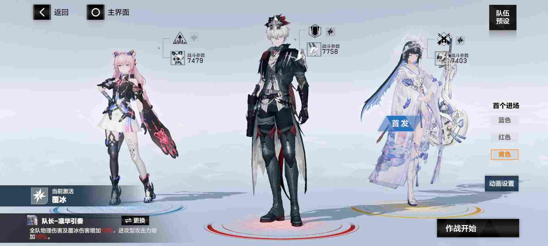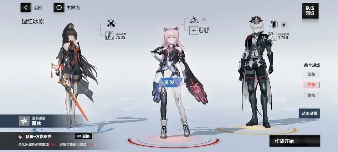 ③覆冰:布偶熊·骇影(蓝位),万事·明晰梦(红位,启动),赛琳娜·希声(黄位,队长,首发,输出)