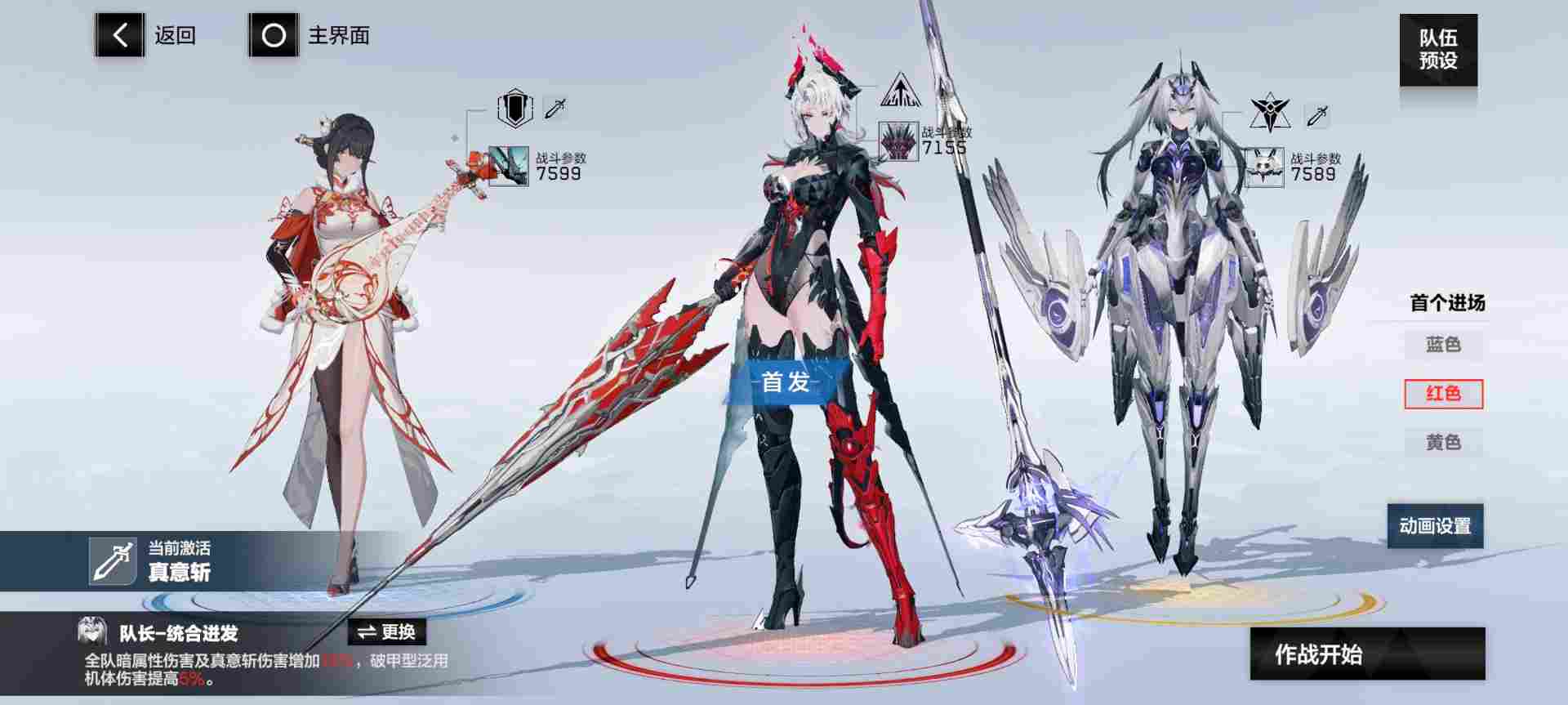 ①真意斩:含英·檀心(蓝位,启动兼副c),维罗妮卡·铮骨(红位,首发),罗塞塔·极锋(黄位,队长,启动兼输出)