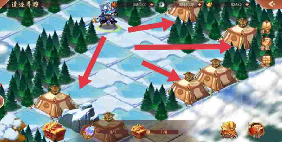 继续按照下图,去激活抵达最后一张图最重要的两个机关,从而激活阵眼。注意此处也不要乱打帐篷,力求能最快拿到即可。