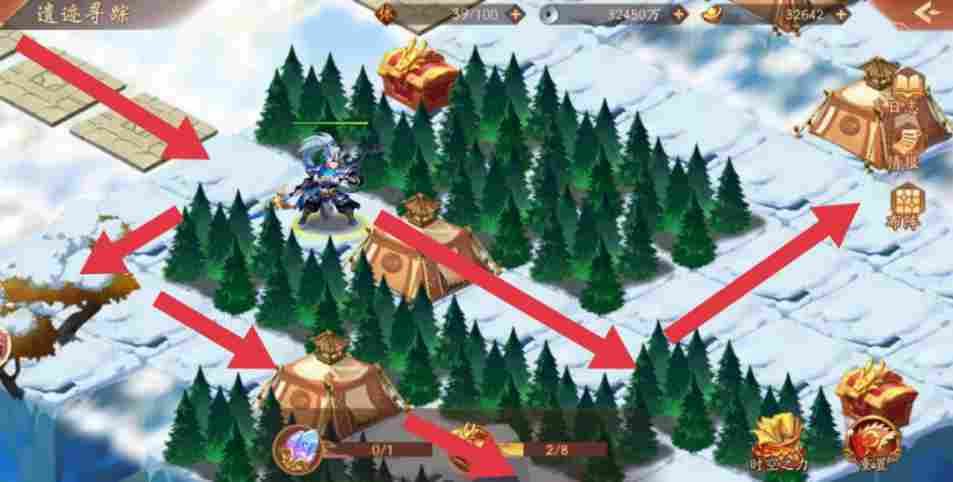 最后一张图没什么难度,按照下图的路线,一路攻打后,即可平推,最后拿到宝物。