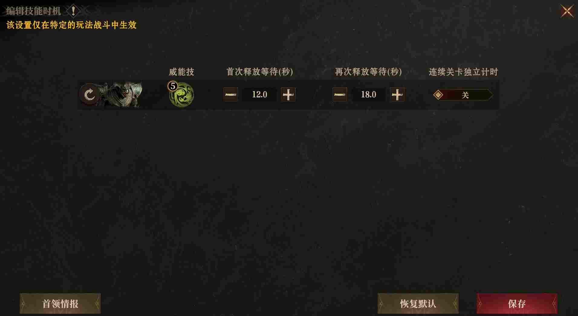 即便将我方施加攻击降低的威能技首次释放时间同样设置在18秒