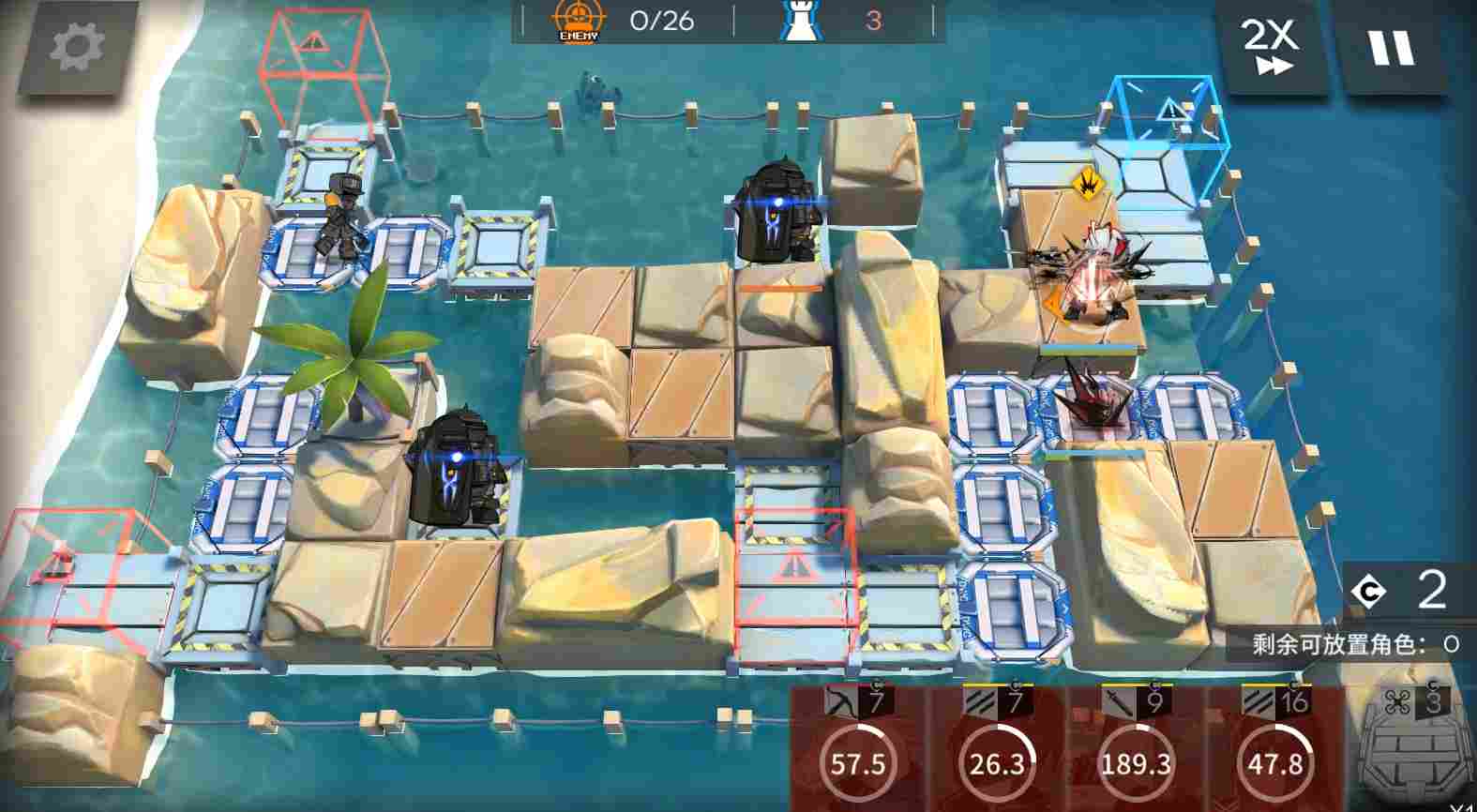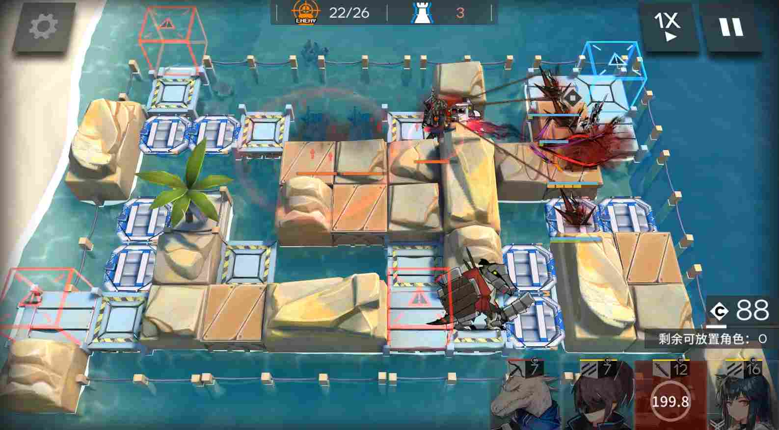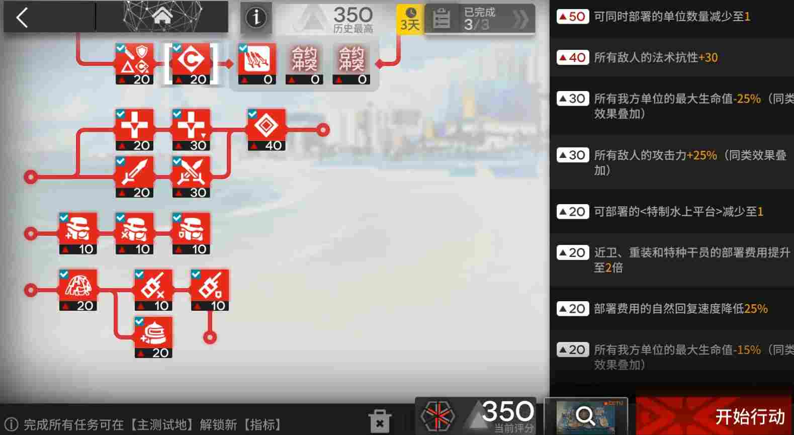 明日方舟【危机合约轮换测试地】EW单核完成任务350难度-翻修中沙滩如下: