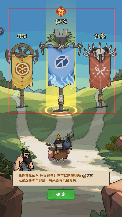 1、进入游戏后,在部落选择界面,挑选心仪的部落加入,获取对应奖励,后续也可更换部落。