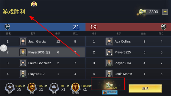 4、胜利后,结算本局击杀数据与金币奖励,点击继续,可开启下一轮射击对战。