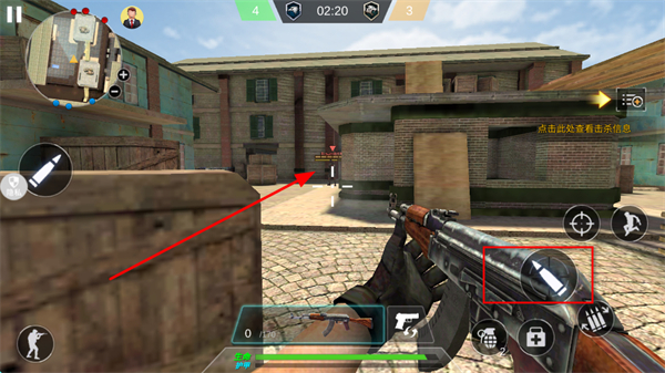 2、战场中左侧摇杆操控角色移动,右侧开火射击敌人,利用掩体规避伤害。