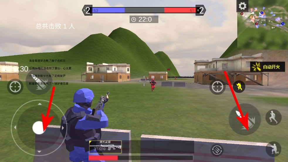 4、滑动左侧虚拟摇杆调整位置,依托掩体推进,配合自动开火持续压制敌人,稳步推进战场进度。