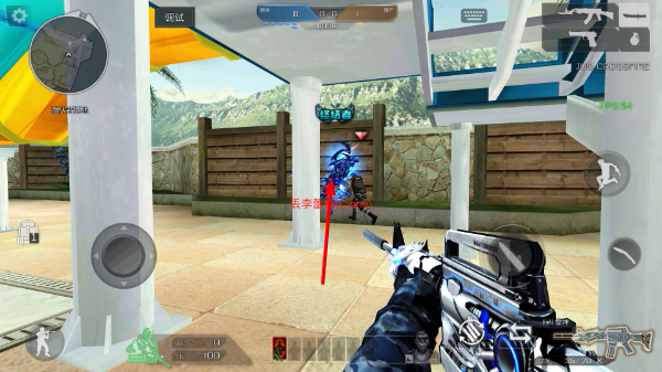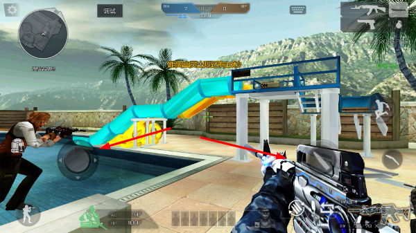 3、利用虚拟摇杆控制角色移动,寻找合适的掩体,使用手中的武器瞄准远处的敌人进行射击。