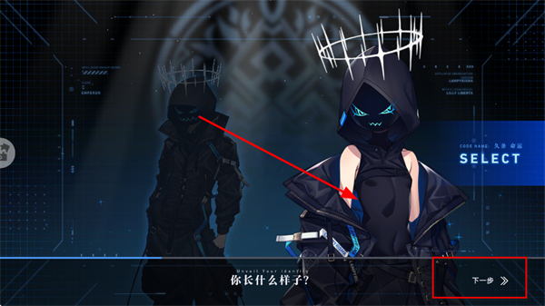1、新手玩家开局创建角色,选定外观与代号,点击下一步按键,开启游戏剧情。