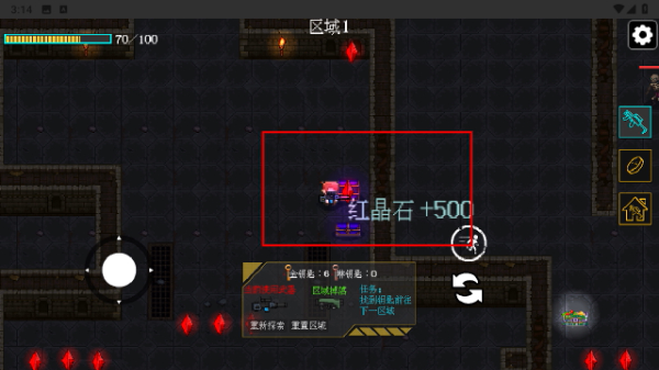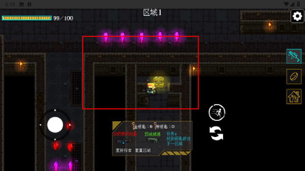 3、探索地牢场景,找到钥匙解锁关卡,规避紫色陷阱等危险,前往下一区域继续挑战。