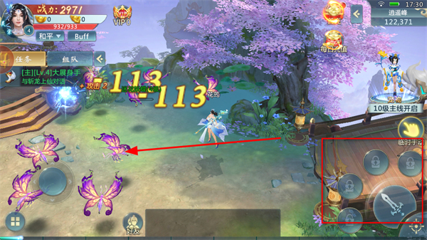 4、进入野外战斗,点击技能,操控角色攻击迷花妖蝶等怪物,击败魔物,完成任务,获取奖励。