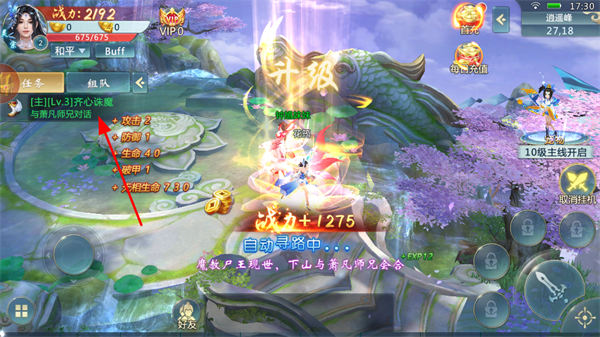 2、进入游戏后,跟随主线任务指引,自动寻路完成任务,领取金币经验等奖励,推进剧情进程。
