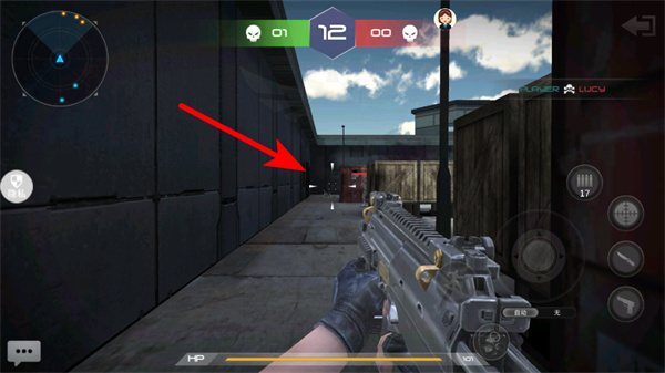 1、操控枪械瞄准巷内的敌方目标,扣动扳机射击,完成首杀,开启对局优势。