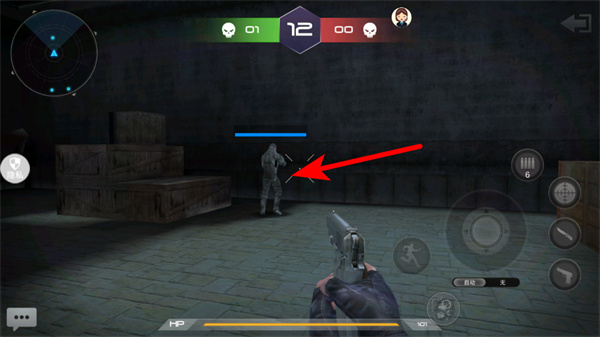 2、操控手枪瞄准敌方目标,精准射击消灭敌人,完成基础击杀操作。