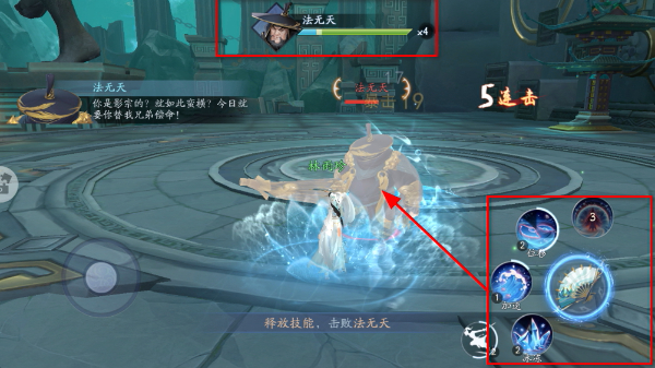 3、在BOSS战中释放技能,击败法无天,完成战斗任务,推进剧情。