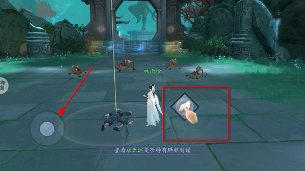 2、进入新手战斗场景,点击操作按钮,操控角色移动,攻击机关小怪。