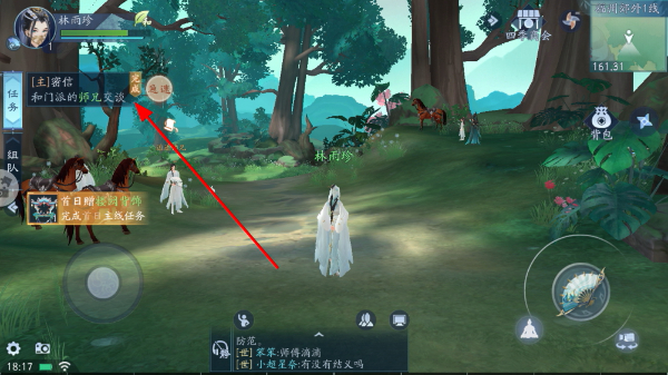 4、跟随主线任务指引,与门派师兄交谈,完成任务,开启仙门修行之旅。