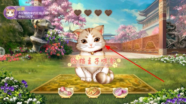 1、新手引导中给猫主子喂食,完成萌宠互动,开启游戏的趣味养成环节。