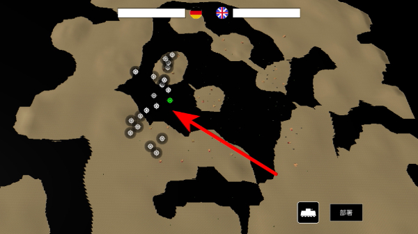 3、在地图上点击绿色标记的位置,确定单位的部署点位。