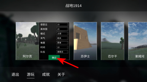 1、战地1914的主界面,确认阵营、模式等参数后,点击绿色确定按钮,进入对局准备阶段。