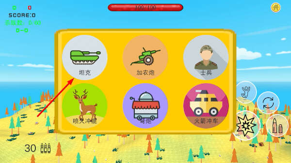 2、对局开启前可优先选择【坦克】作为出战单位,它的火力与防御属性均衡,能适配多数地形的战斗需求。