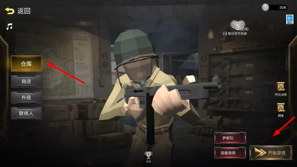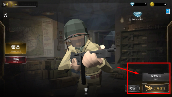 1、到游戏主界面查看装备抽奖等功能,选择滨金模式或靶场,点击开始游戏按钮,进入游戏的准备界面。