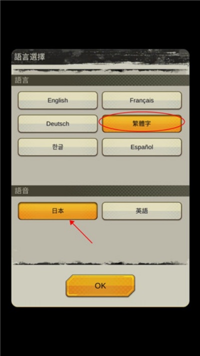 2、进入设置流程后可选择游戏语言以及对应语音包内容。