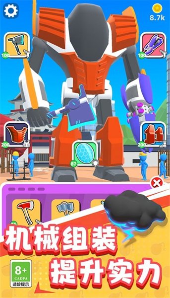 3、在这里,你可以化身为世界一流的工程师,自由地组装、打造出只属于你的、独一无二的机器人,并亲手操控它战胜对手!