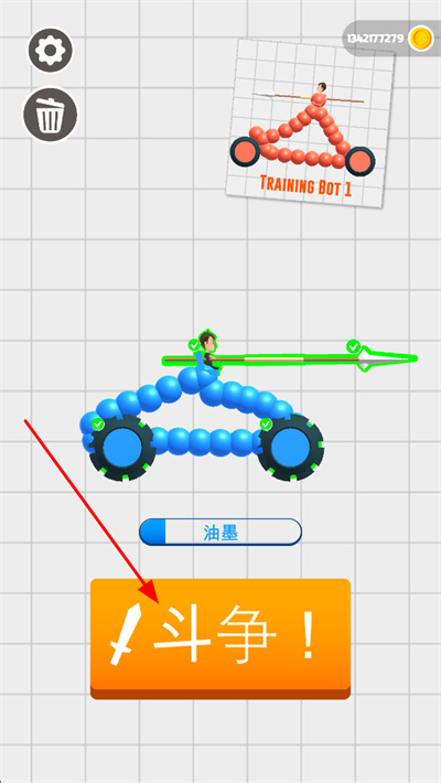 2、绘制完成后点击斗争按钮,进入对战场景,操控战车与对手展开战斗,争夺胜利。