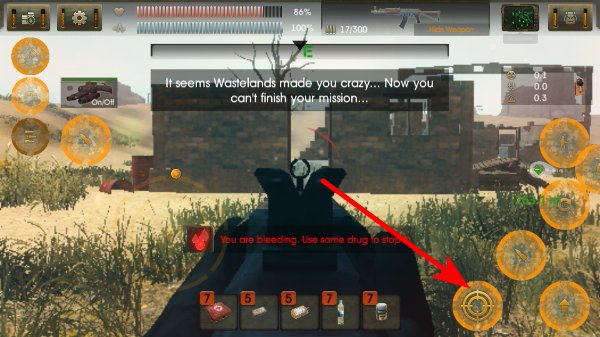3、进入废土探索场景,点击右下角射击按钮,瞄准目标进行射击,熟悉基础战斗操作。