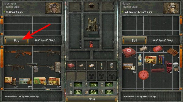2、进入交易界面,点击Buy按钮,可向商人购买武器、弹药等物资,为战斗做准备。