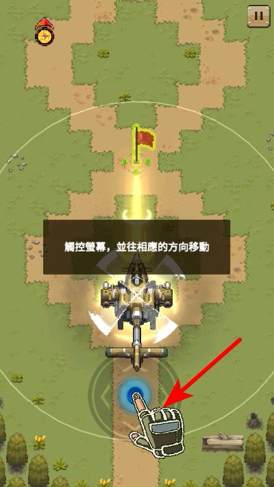 1、根据界面提示,触控屏幕下方虚拟摇杆并向对应方向拖动,操控载具向红旗目标点移动,完成教学。