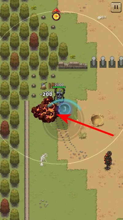 4、点击技能按钮,释放范围爆炸技能,摧毁障碍物或敌方单位,完成技能操作教学,推进关卡进程。