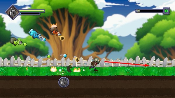 1、操控僵尸角色向前奔跑,躲避空中发射的各类子弹,同时避开地面的火焰等陷阱,安全向前推进。