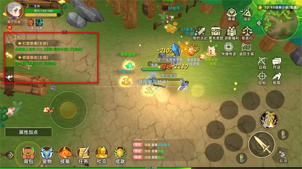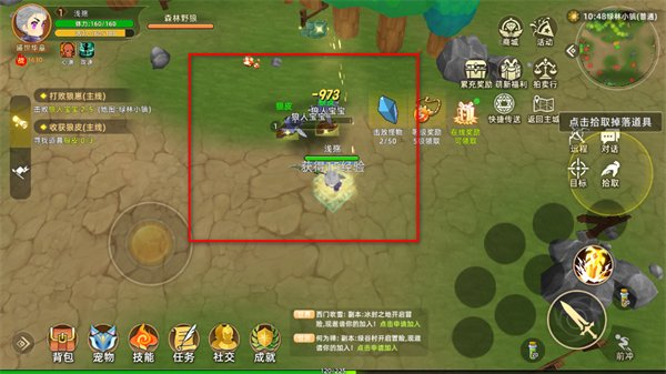 3、操控角色在关卡中战斗,对怪物造成伤害,完成击杀任务推进关卡进度。