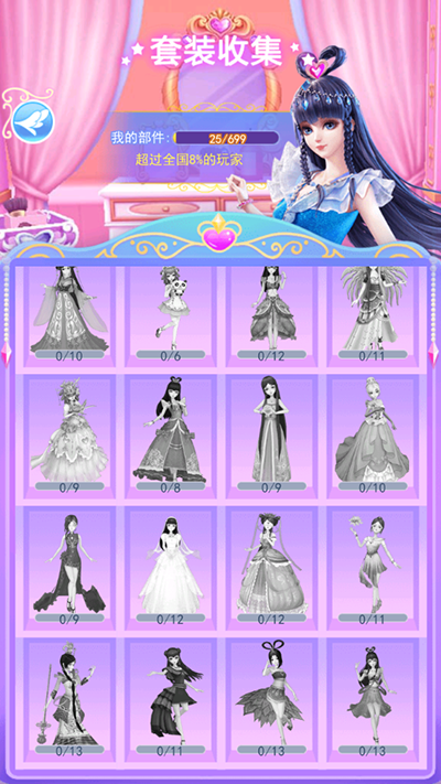 2、可以看到套装、神兽、仙子小屋等物品收集进度;
