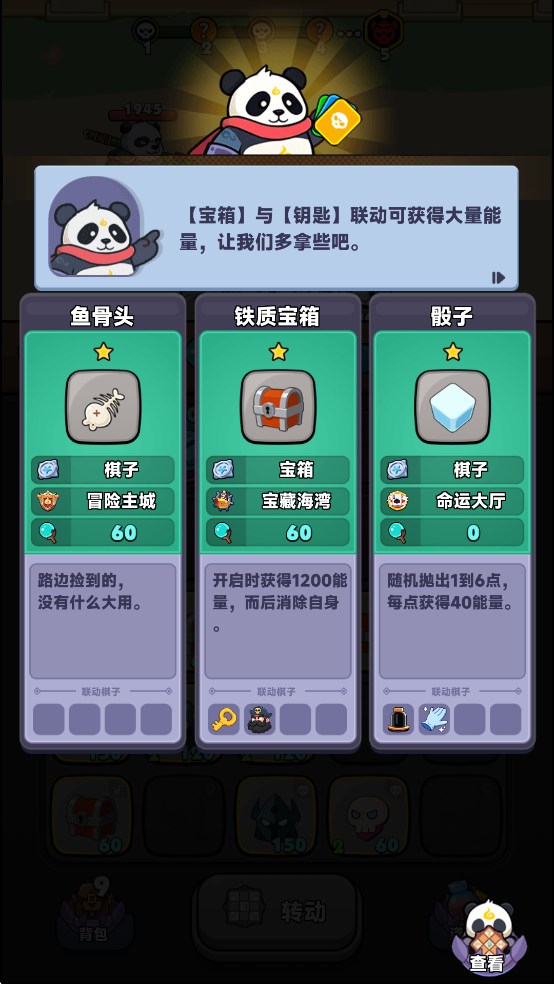 转动后棋子随机排布并获得基础能量,触发特殊效果时还可获得额外能量。