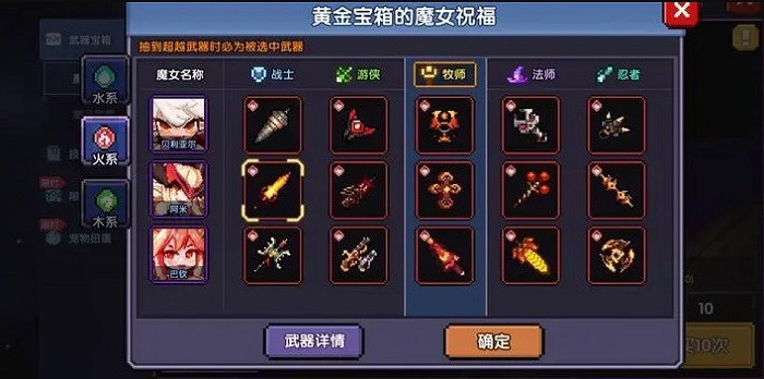 魔女武器你玩啥流派就在抽奖里自己选保底,新手50抽也有自选宝箱,可以选我上面推荐的三种流派魔女武器。