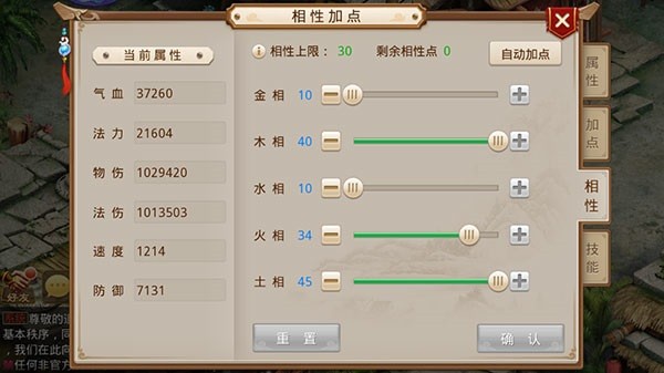 除了有一般游戏常见的属性加点系统外,问道还有独创的相性加点,相性加点会影响角色的五行相性,相性加点和属性加点的任意多种组合让玩家可 以任意选择自己的成长路线。