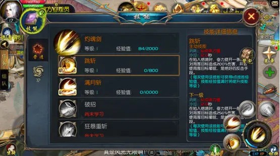 通过【菜单】-【技能】,即可查看各个技能的详细信息,将想要使用的技能拖动到界面右下方的技能快捷栏中,这样就可以在战斗中十分便捷的使用该技能了。