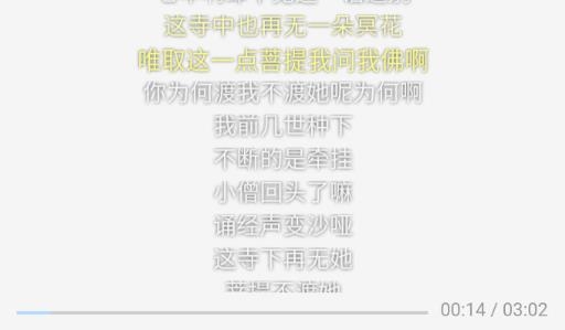 1、歌词实时查看,播放一首歌的时候能够自动浮现这首歌的全部歌词;