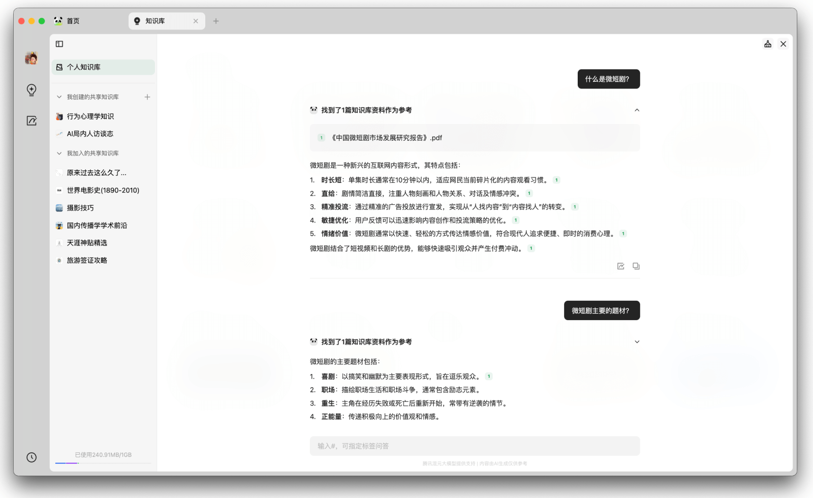 A:PC 端:在 pc 端,有两种可以针对知识库提问的方式。