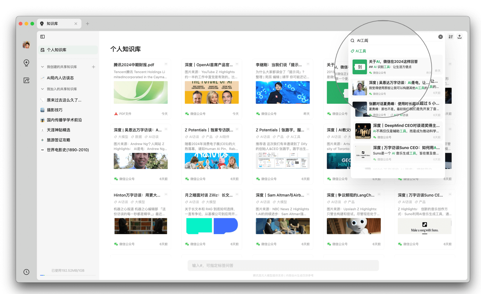 2)收藏浏览内容:除了本地上传,也可以在网页浏览、AI 对话、笔记写作的过程中随时点击右上角的「加入知识库」收藏有价值的信息